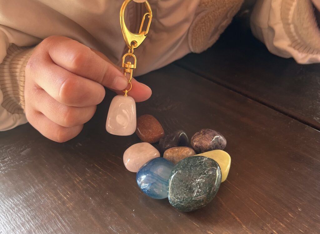 砂の中に埋まった宝石を探す「クリスタルハンター」では、なんと夫がラッキーな“メダル”を発見!1回の宝石探しにつき1枚のみ隠されている特別なメダルで、見つけた人は特別なガチャガチャでストーンキーホルダーもゲットできます!