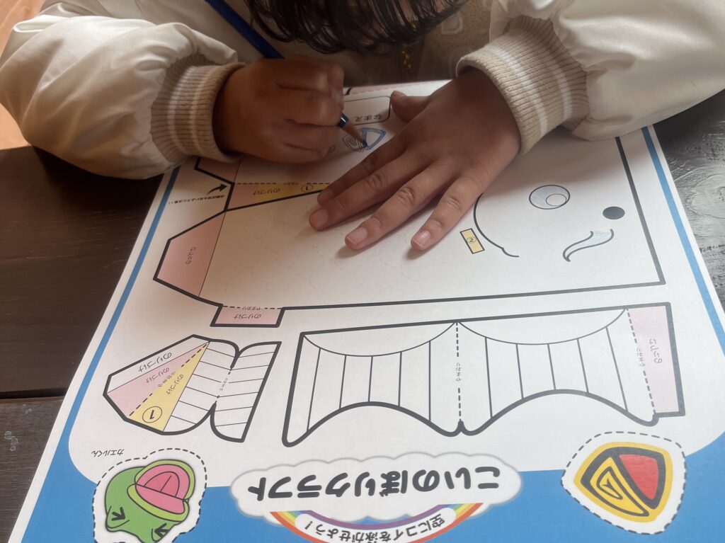 午後は、期間限定の「こいのぼりクラフト」を購入。こいのぼりの色を塗って、ハサミやのりで形を作って完成させます。お絵描きや工作が大好きな娘は、黙々と集中して楽しんでいました♪