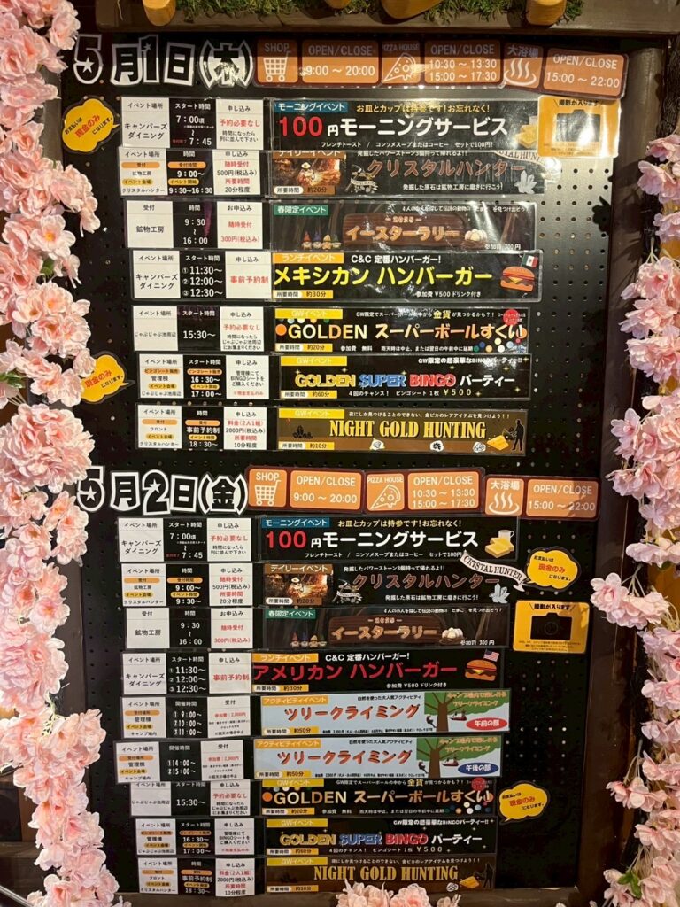 👉🏻のんびり時間も大切にしたい方は、参加イベントを絞るのがおすすめです。焚き火や散歩の時間も楽しめたらいいですよね♪