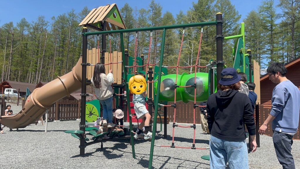 最終日は快晴!チェックアウト前に、遊具のある広場でたっぷり遊びました。