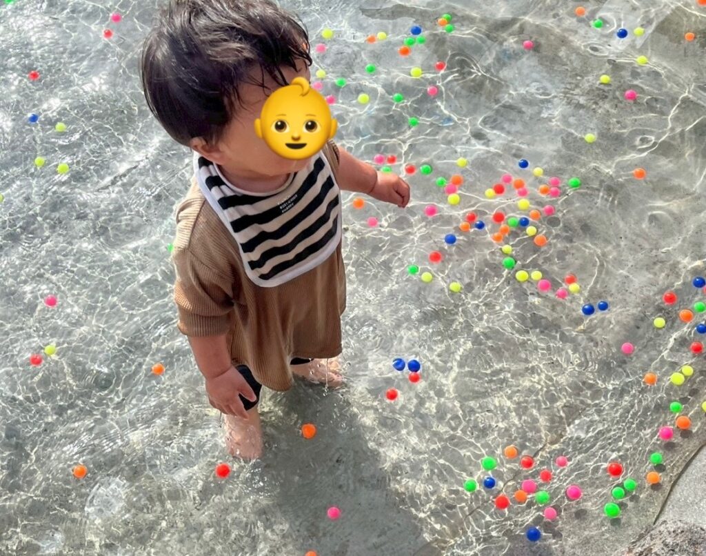 【子連れポイント】じゃぶじゃぶ池の水は浅く、安心して遊べます。タオル・着替え・ボールを入れるバケツを持参すると◎🪣。
