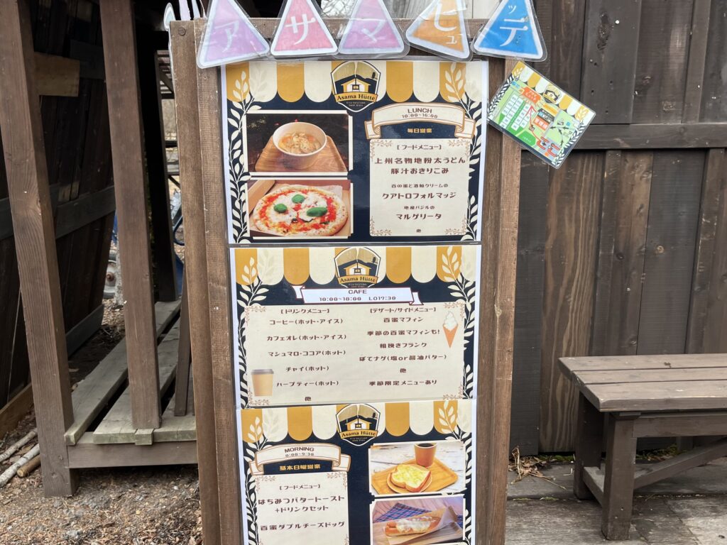 チェックアウト後は、キャンプ場内にあるカフェ「アサマヒュッテ」へ立ち寄りました。