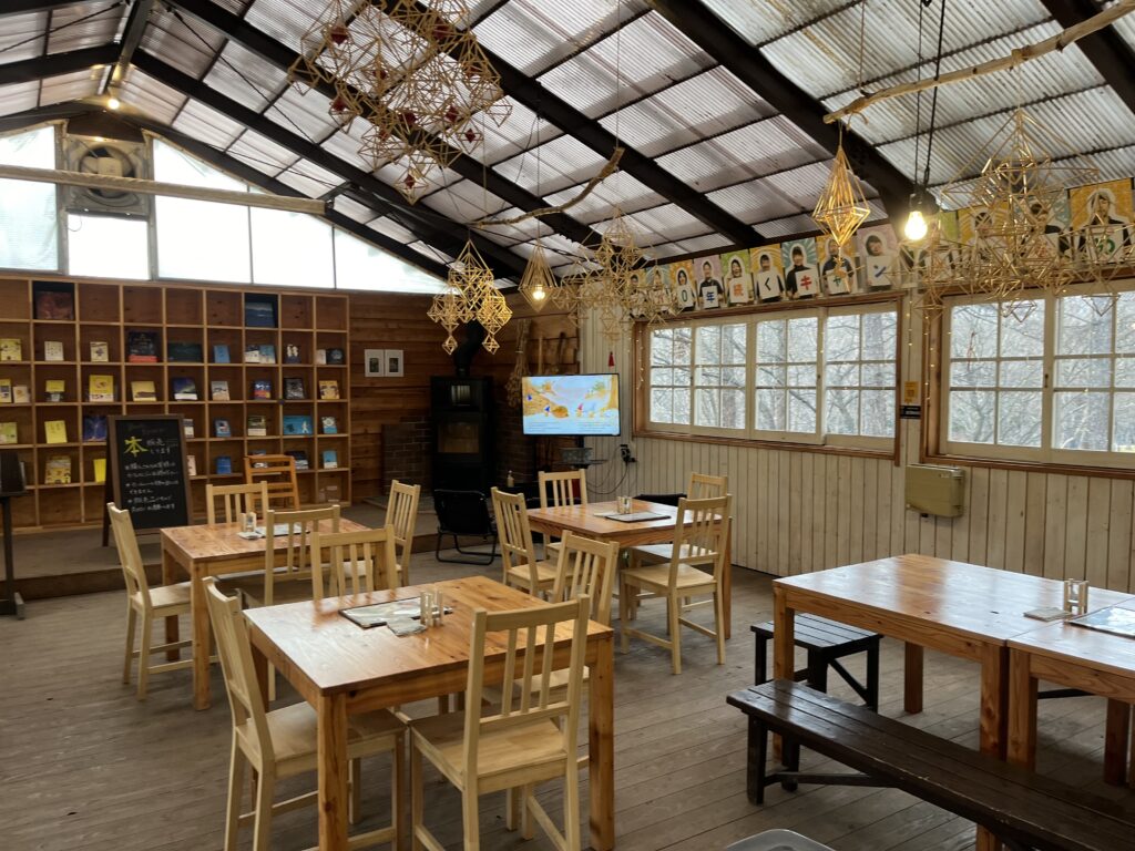 カフェの店内には薪ストーブがあり、冬でもとても暖かく居心地が良かったです。とてもオシャレな空間で、キャンプの最後にゆっくり過ごすのにぴったりの場所でした。