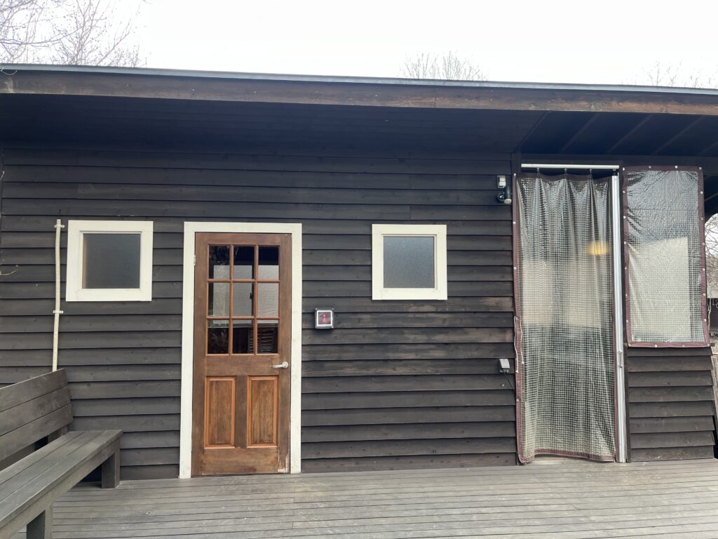 キャビンには照明がついていますが、夜になると思った以上に暗くなります。特に外のウッドデッキはかなり暗く、調理や荷物整理は「ランタン持ってきて良かったね…」と夫と顔を見合わせるほどでした。