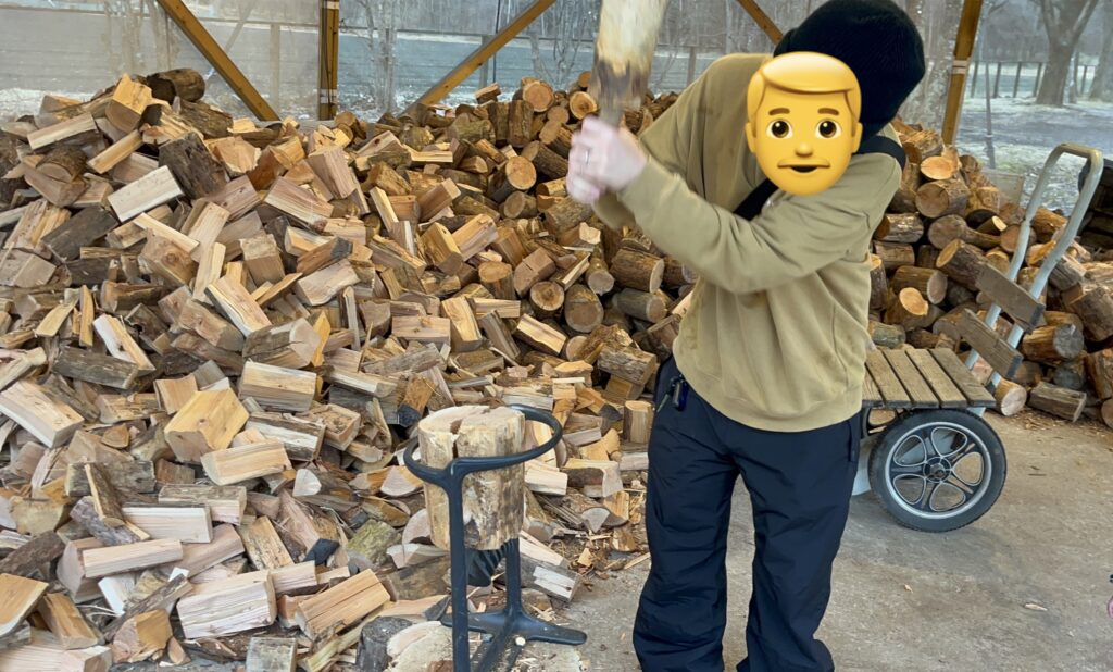薪割りができるとのことで挑戦しましたが、思った以上に硬くて全然割れませんでした…。ただ、割らなくても使える薪もたくさんあるので大丈夫です👌